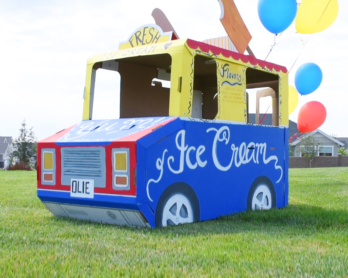 For Reese’s “Tidal Wave” music video, we decided to make the “love” story about a love of Ice Cream. Initially, we were going to find a real ice cream truck; however, after realizing that there aren’t that many ice cream trucks in Utah county, we started looking for other options. I found this darling cardboard Ice Cream truck from the company, “Build a Dream.” I ordered it from Amazon here: http://amzn.to/2xm9e2V.